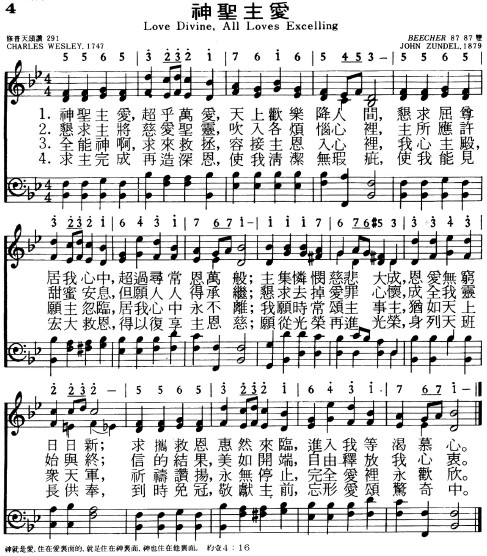 《新编赞美诗》收录在第238首《神圣纯爱歌》