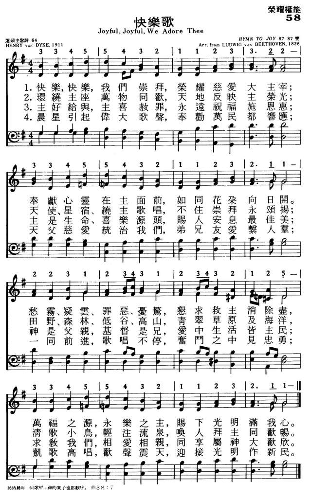 1.快乐,快乐,我们崇拜,荣耀慈爱大主宰;