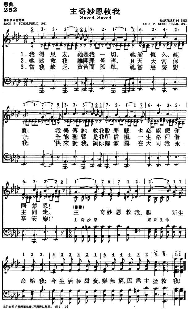 我乐传祂救我脱罪孽,也必能使你同蒙恩!