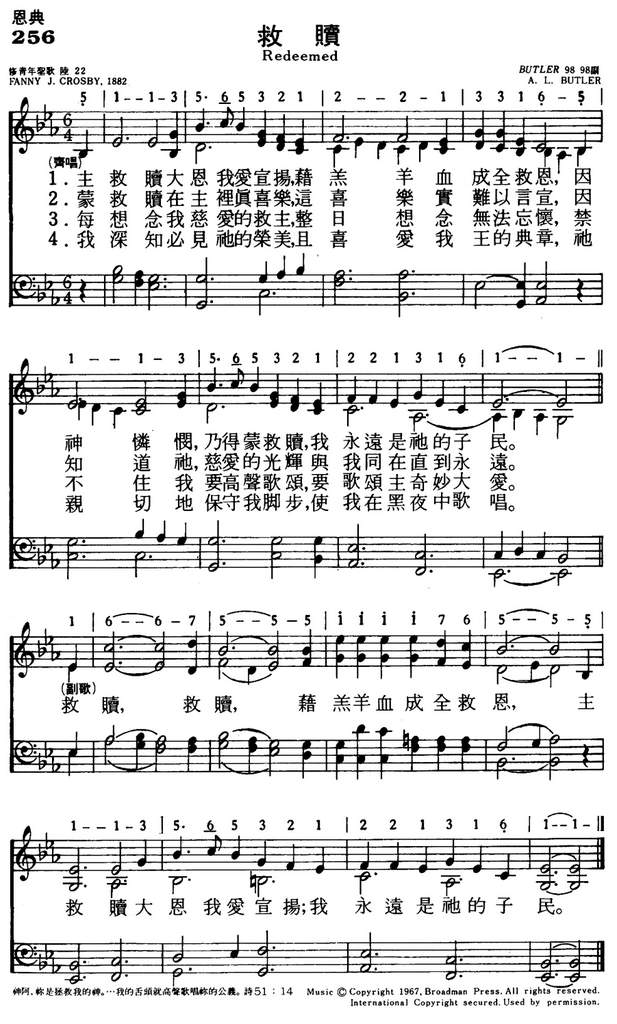副歌:救赎,救赎,借羔羊血成全救恩,
