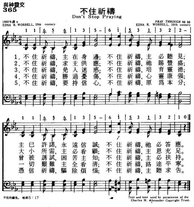 1.不住祈祷,主在身边,不知祈祷,主必听见,