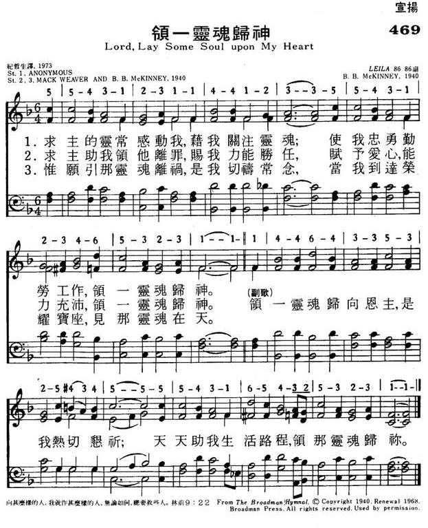 使我忠勇勤劳工作,领一灵魂归神。