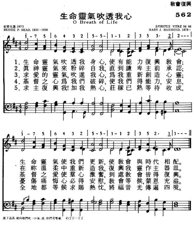 1.生命灵气吹透我身心,使有能力复兴教会;