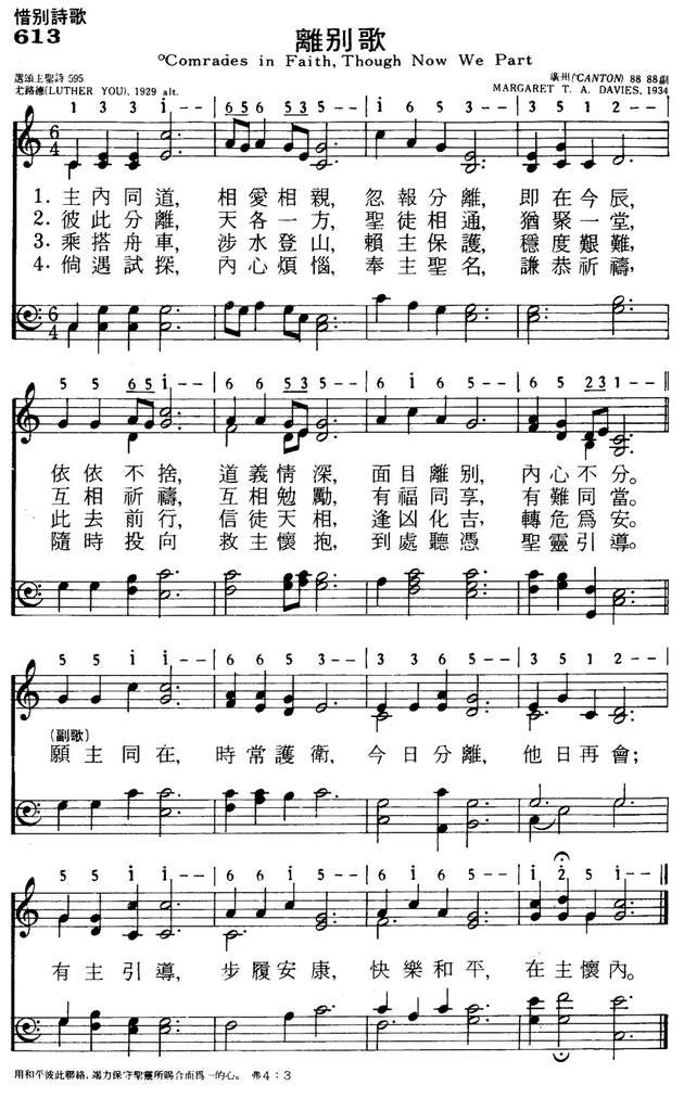 1.主内同道,相爱相亲,忽报分离,即在金辰,