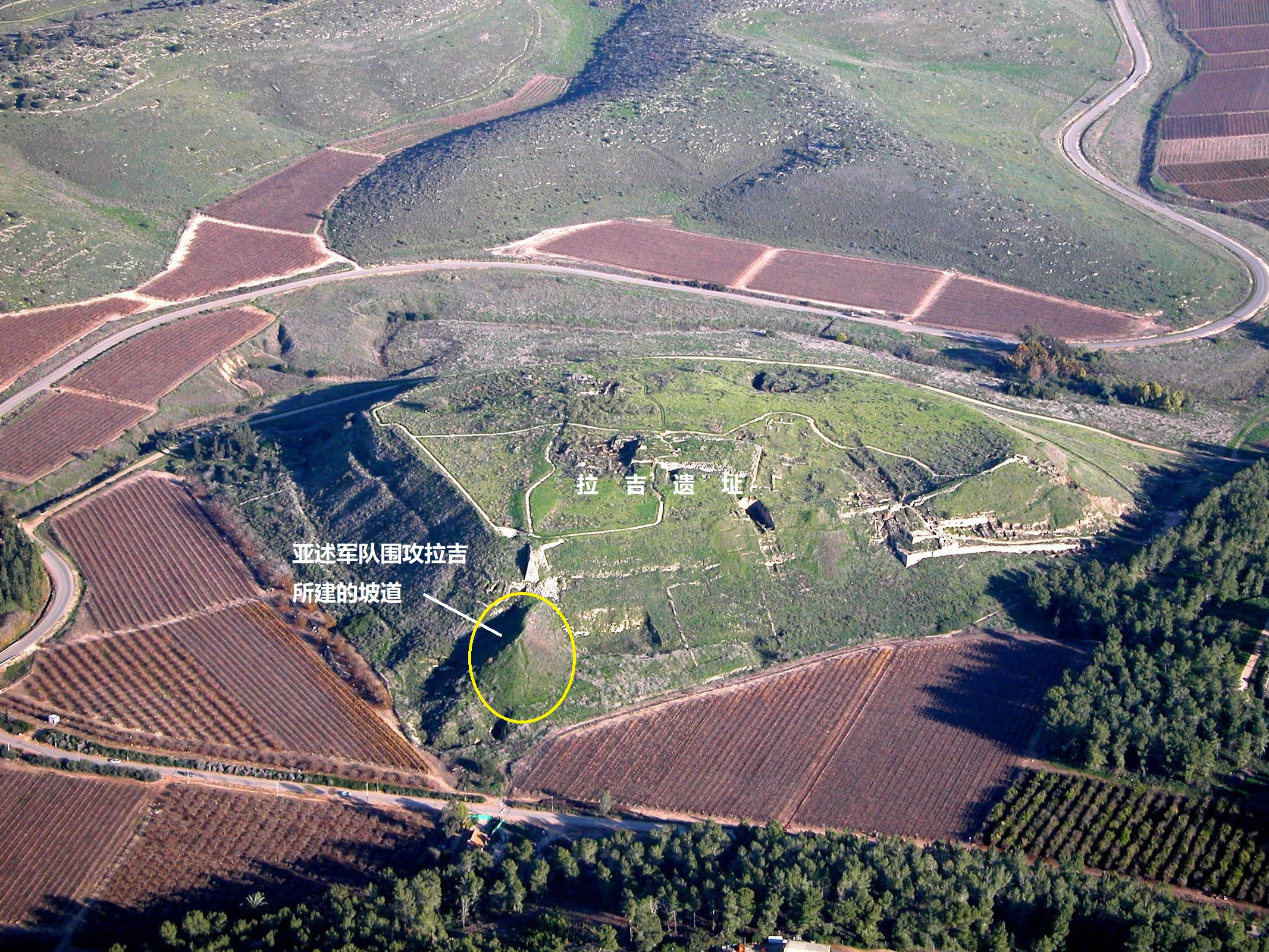 上图:犹大要塞拉吉遗址。主前8世纪,亚述王西拿基立攻打犹大王希西家,亚述军队在拉吉的西南角建了坡道,攻上拉吉的城墙。