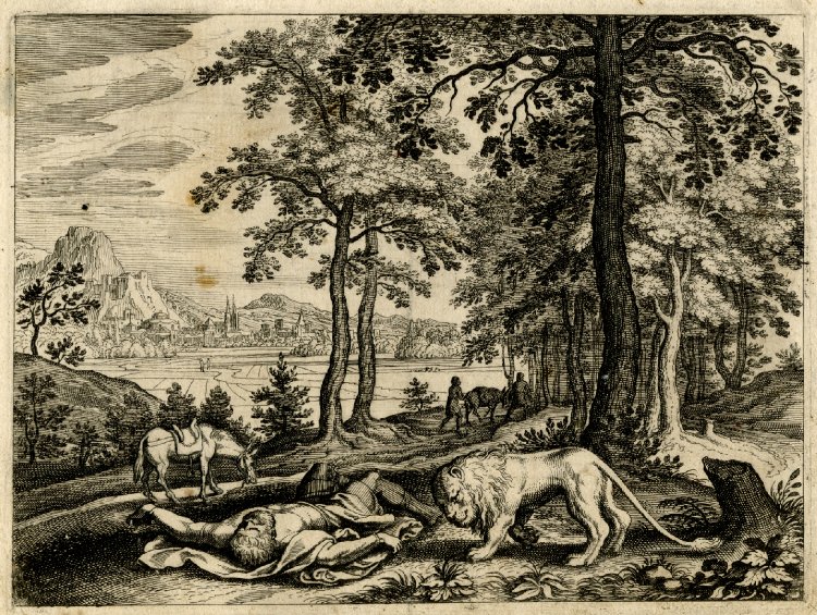 【王上十三25】「有人从那里经过,看见尸身倒在路上,狮子站在尸身旁边,就来到老先知所住的城里述说这事。」