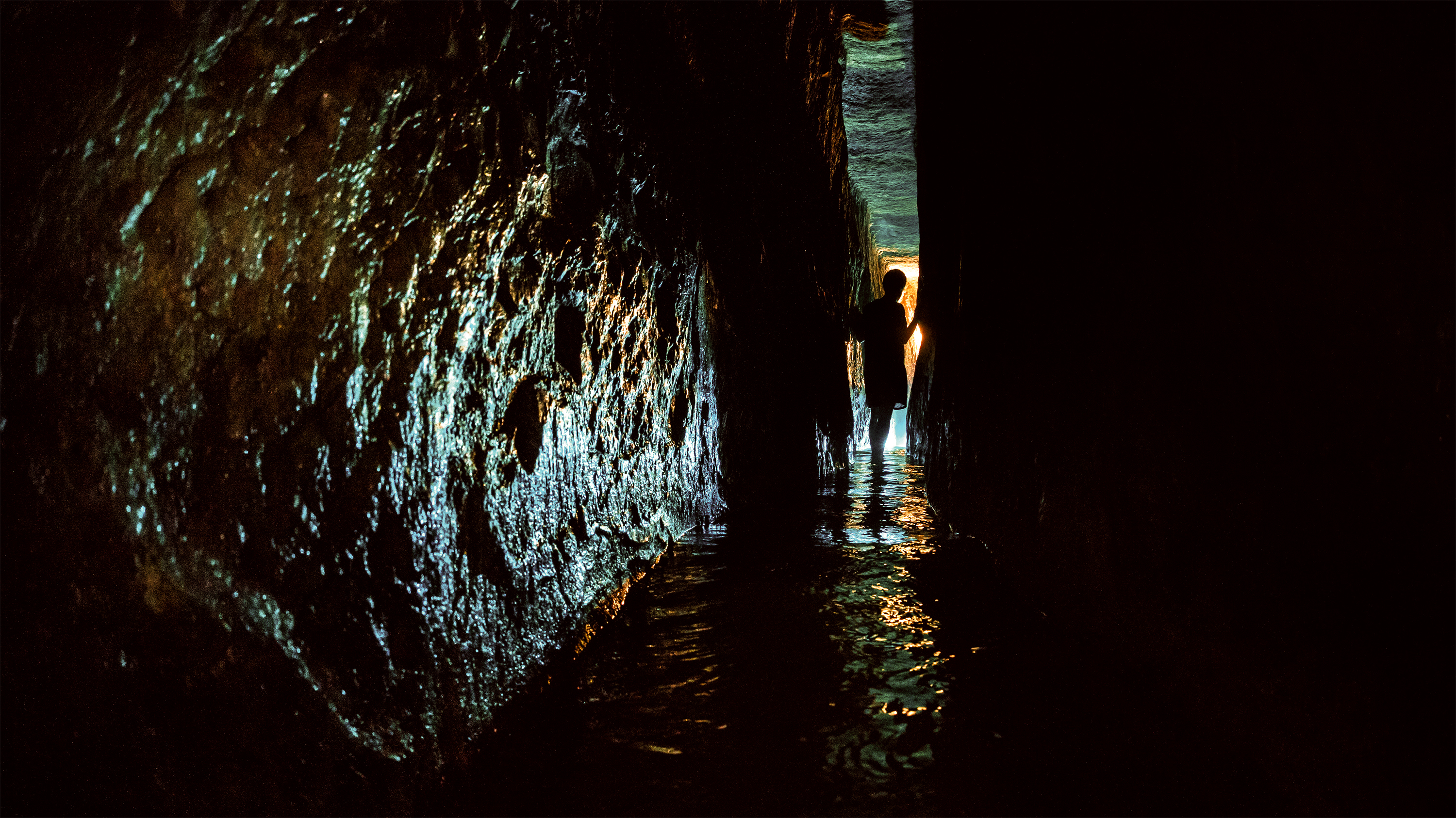 上图:19世纪末发现的希西家水道(又叫西罗亚水道)的内景。