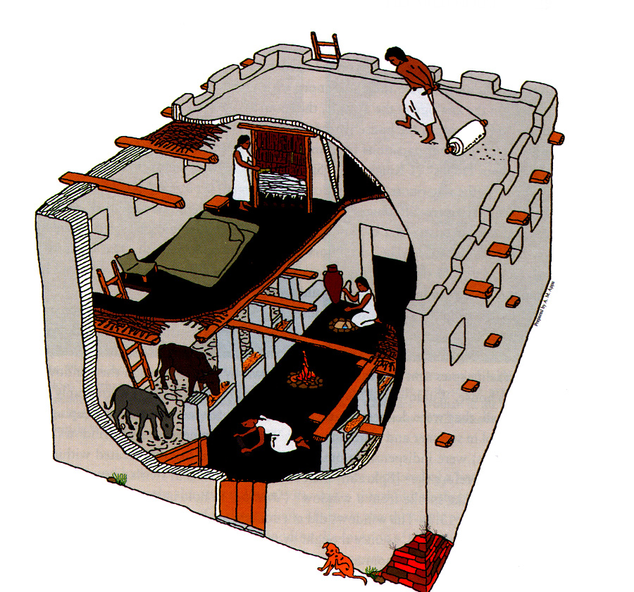 - 古代以色列民居的屋顶在冬天雨季过后,会重新漫上灰泥防水,混在泥土之中的草种也会发芽生长。「房顶上的草」(6节)长得很快,但由于土薄根浅,很快就会枯干。那些苦害以色列的仇敌也是如此,他们的计划开始似乎很成功,但不会有结果。而我们里面「恨恶锡安」的肉体,也不会有什么生命的收获,「收割的不够一把,捆禾的也不满怀」(7节)。