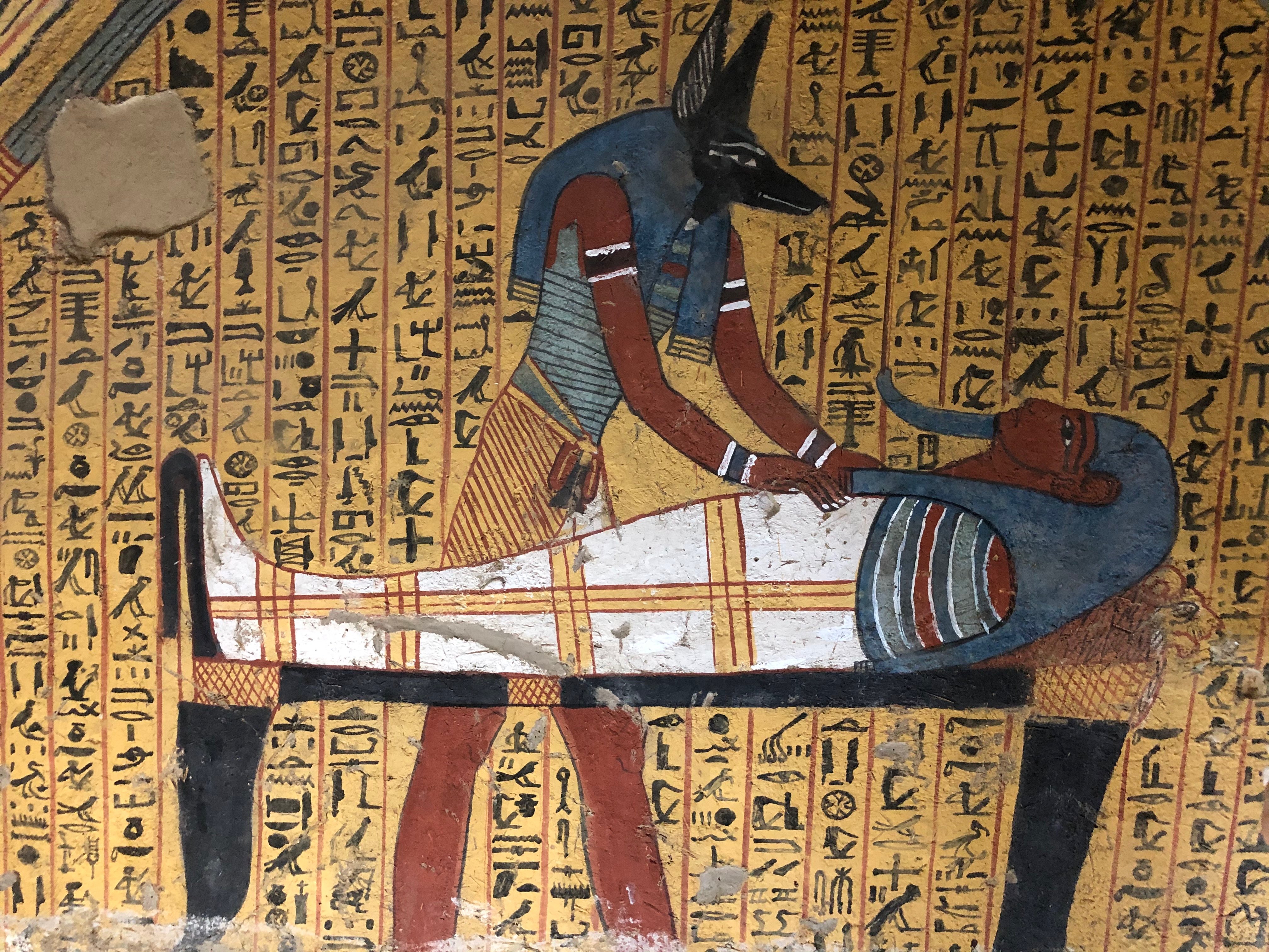 上图:主前1279-1213年古埃及壁画,阿努比斯神(Anubis)正在制作木乃伊。古埃及人相信人死后有一个「称心审判」,心若有罪咎的累赘,就会面临灭亡。因此,从新王国时代开始,死者的心脏需要从体内取出,与其他的重要内脏安放在礼葬瓮中,免得在审判时被心出卖、危害来生。而在木乃伊中取代人心的是一块刻成蜣螂形状的石头,这圣甲虫是永生的象征。但神的换心手术却和埃及相反,祂会用肉心替换他们的石心(结十一19-20)。
