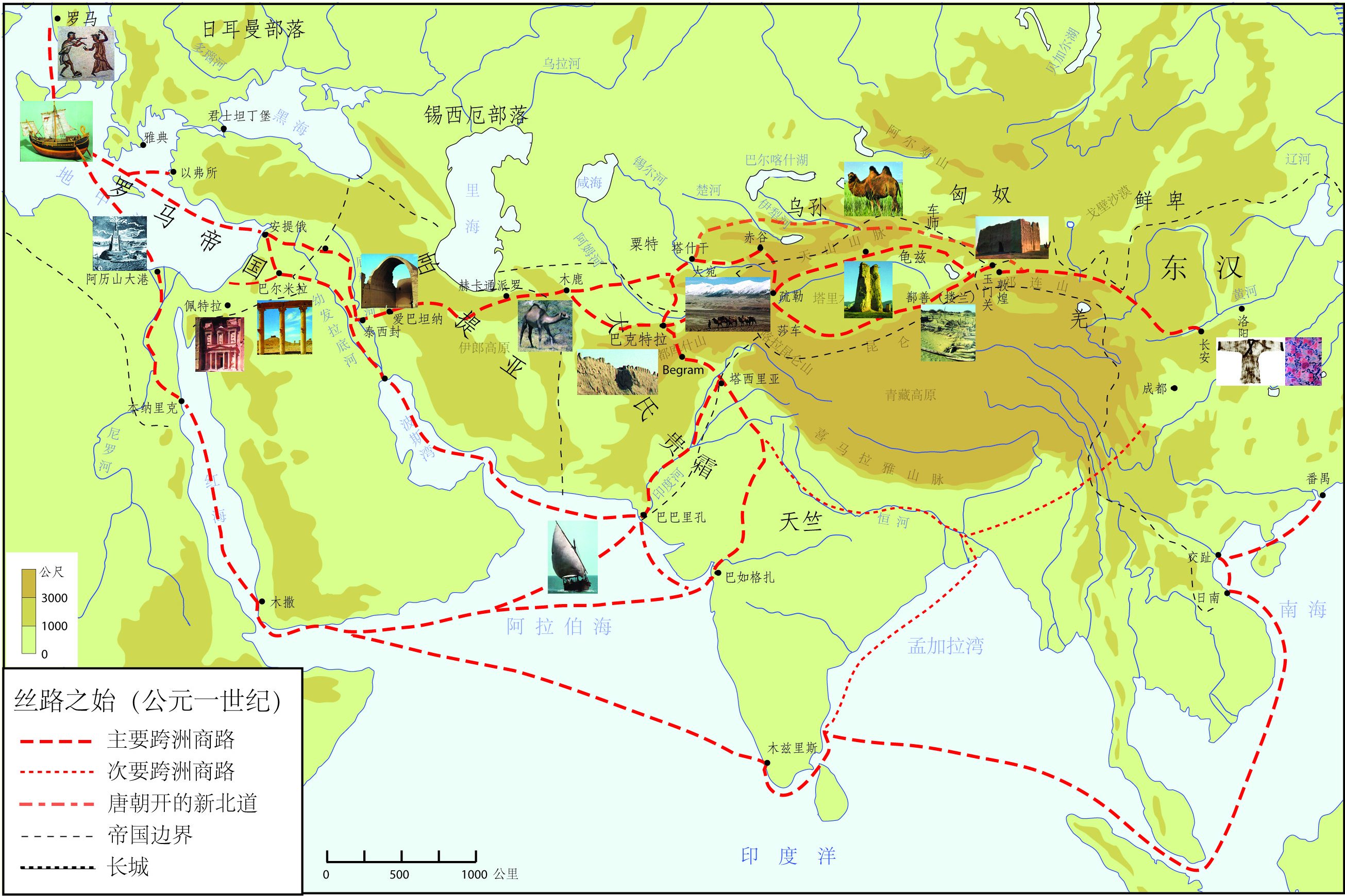上图:罗马、东汉时代丝绸之路开通,福音传到地极成为可能。