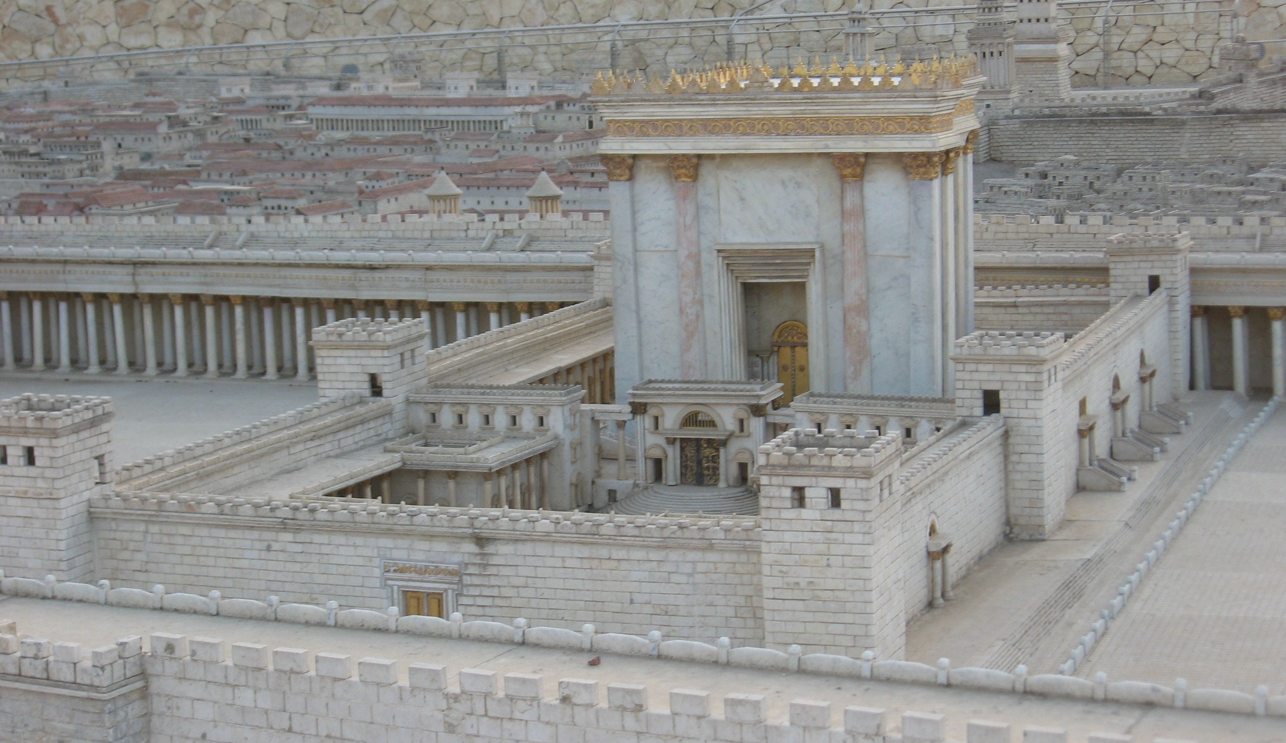 上图:西墙隧道中第二圣殿地基的巨石。根据《犹太古史记》卷15第11章记载,圣殿以白色且坚硬的石头建造,每块石头长25肘,高8肘,宽12肘。新约时代一肘大约是55.5厘米,因此这些石头都是13.8米x4.4米x6.7米的巨石。第二圣殿的石头已经拆毁,但埋在地下的地基已经被挖掘出来,一部分开辟为西墙隧道供人参观,可以想象第二圣殿之宏伟。
