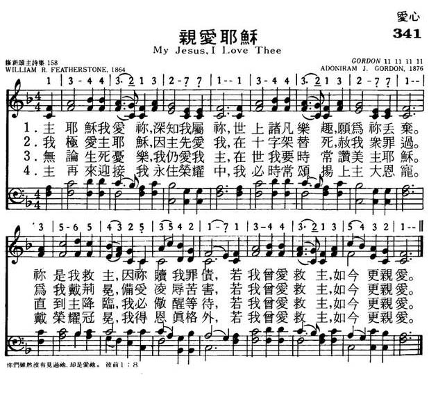 后来,戈登博士(Dr.Adoniram J.Gordon)为这首诗谱了曲,配上这调子非常的合宜,很能够表现出这首诗的特色,且更容易帮助唱者达到与主亲近,爱主更深的境界。